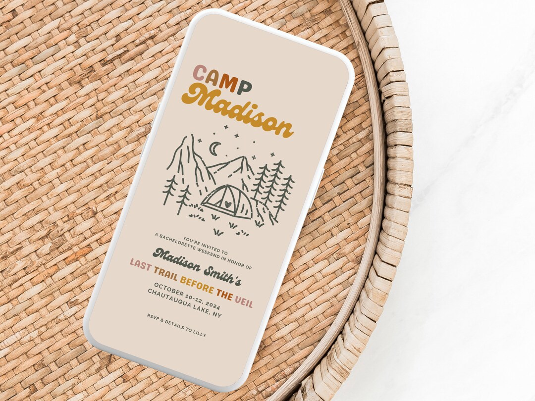 Buy Camp Bachelorette Party Invitation and Itinerary Template